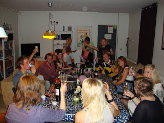 See the ceiling light in the left side of the picture? We had to string it up with paperclips because it kept threatening to hit me on the head. Oh, and everyone's toasting. This happened quite a lot. When you make a toast in Denmark, you say 'skål' and look everyone in the eye AT THE SAME TIME without breaking contact. I still don't really know how that works.